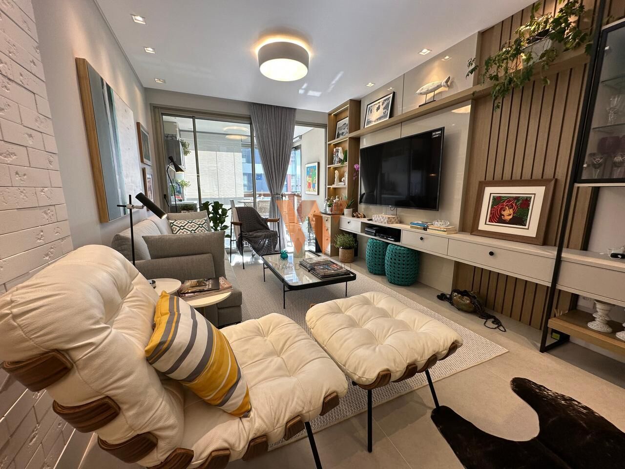 Imóvel com 3 suítes, salas de estar e jantar integradas com a cozinha, área de serviço, sacada com churrasqueira fechada e 2 vagas de garagem e hobby box. Ficam móveis fixos.
