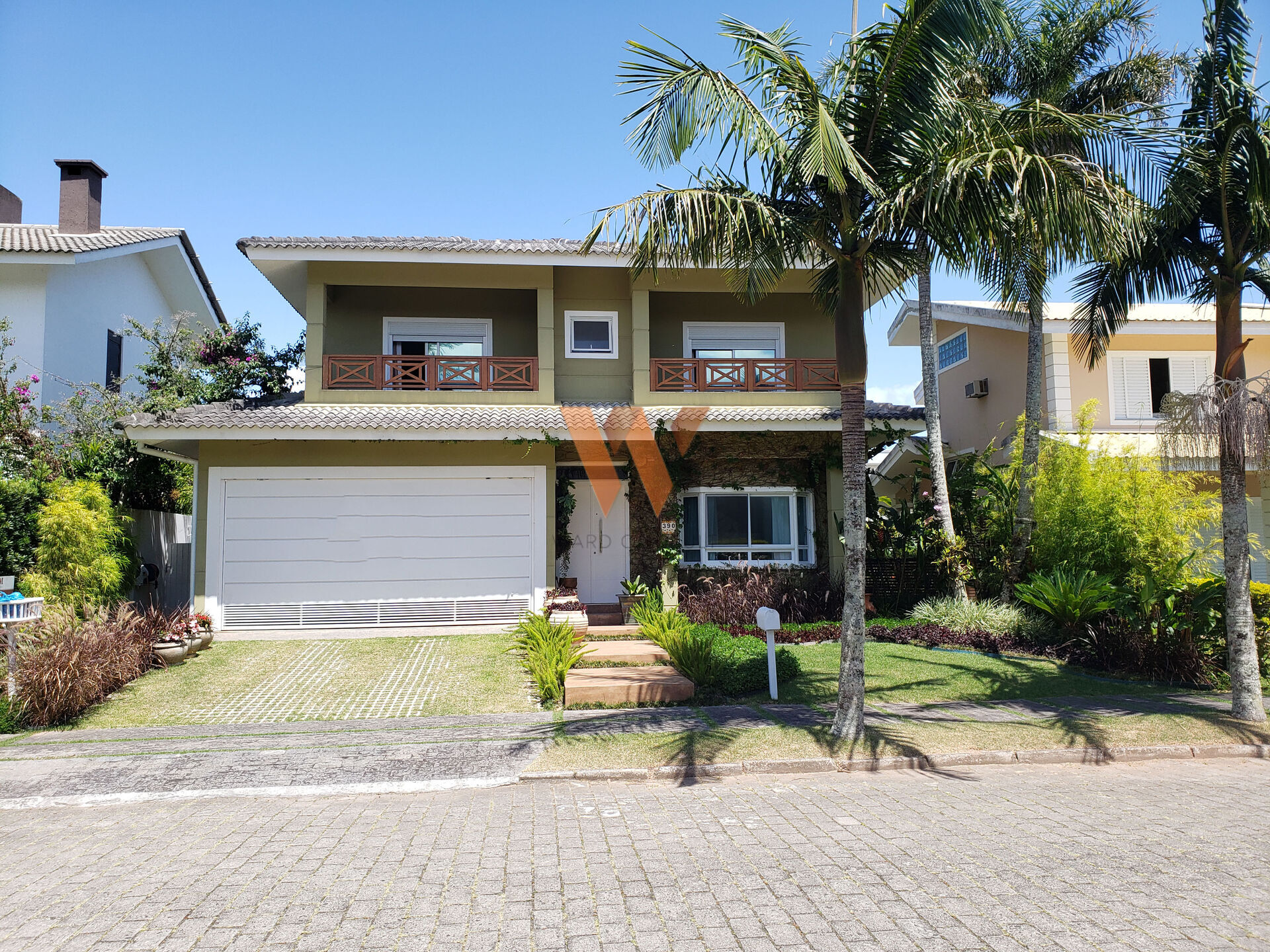 Andar Térreo: Sala de Estar; Sala de Jantar; Sala TV, Cozinha; Ampla Área de Lazer com Cozinha Gourmet, Churrasqueira e Piscina; Lavanderia; Despensa; Lavabo; Banheiro Social; Orquidário, Garagem para 2 Carros; Lindo Jardim com acesso para alameda.